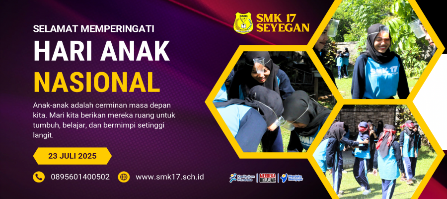 Tanggal 23 Juli setiap tahunnya kita peringati sebagai Hari Anak Nasional. Peringatan ini menjadi momen penting untuk kembali menegaskan bahwa anak-anak adalah aset berharga bangsa, generasi penerus yang akan menentukan masa depan Indonesia. Di SMK 17 Seyegan, kami melihat Hari Anak Nasional bukan sekadar seremoni, tetapi sebagai pengingat bahwa pendidikan yang berpihak pada anak adalah investasi jangka panjang yang sangat berharga.
