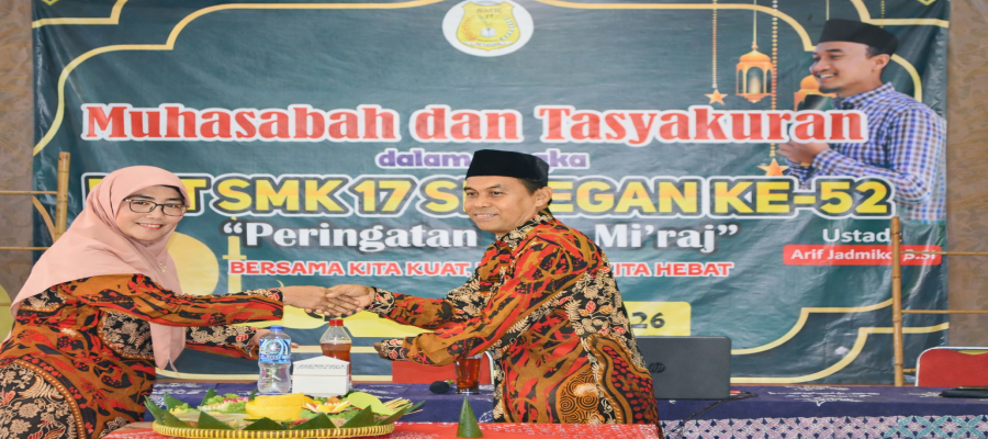 Seyegan – SMK 17 Seyegan menyelenggarakan kegiatan Muhasabah dan Tasyakuran dalam rangka Hari Ulang Tahun (HUT) SMK 17 Seyegan ke-52 yang dirangkai dengan peringatan Isra Mi’raj Nabi Muhammad SAW 1447 H. Kegiatan tersebut dilaksanakan pada Kamis, 15 Januari 2026, bertempat di Aula SMK 17 Seyegan, dan diikuti oleh seluruh jajaran kepala sekolah, guru, staf, serta siswa-siswi SMK 17 Seyegan.