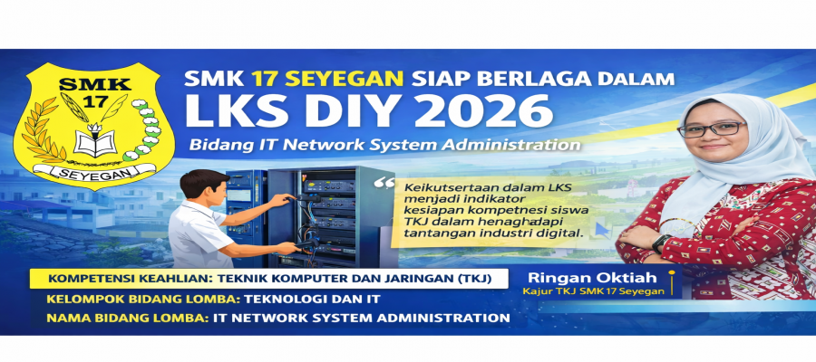 “LKS bukan hanya tentang meraih juara, tetapi tentang proses pembelajaran, kedisiplinan, dan peningkatan kompetensi siswa. Bidang IT Network System Administration menuntut ketelitian, logika yang kuat, serta problem solving yang cepat. Kami optimis siswa SMK 17 SEYEGAN mampu memberikan performa terbaik dan membawa nama baik sekolah.”
