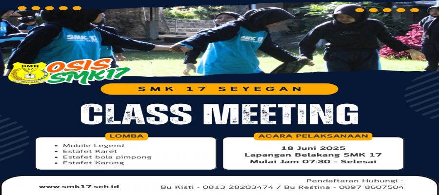 Ahmad Syauqi Syarhumayu, Ketua OSIS SMK 17 Seyegan dari kelas XI Desain Komunikasi Visual (DKV), mengungkapkan bahwa Class Meeting ini merupakan program rutin yang selalu dinantikan. "Kami dari OSIS berusaha menyajikan lomba-lomba yang seru dan bisa diikuti oleh semua teman-teman. Tujuannya bukan hanya mencari pemenang, tapi yang lebih penting adalah mempererat kebersamaan, melatih kekompakan antar kelas, dan tentunya sebagai sarana hiburan yang positif," ujar Ahmad.